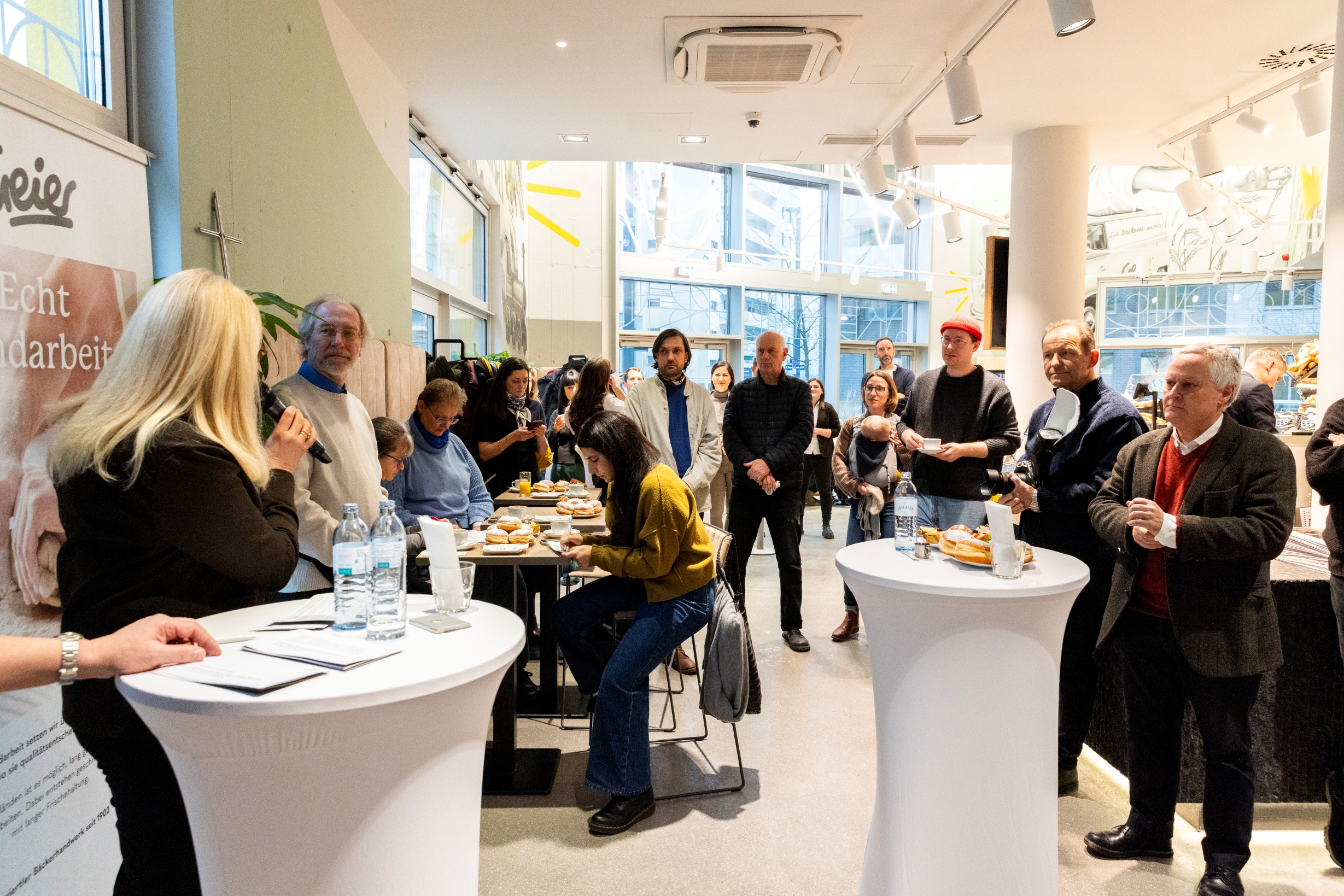 Im Rahmen eines Kennenlernfrühstücks lud die Bäckerei Geier Medienvertreter:innen, Nachbar:innen und Partner in das neue Geschäft. Bezirksvorsteher Alexander Nikolai hob dabei die Bedeutung familiengeführter Betriebe für den Bezirk hervor und begrüßte den neuen Standort als Bereicherung für das Grätzel.